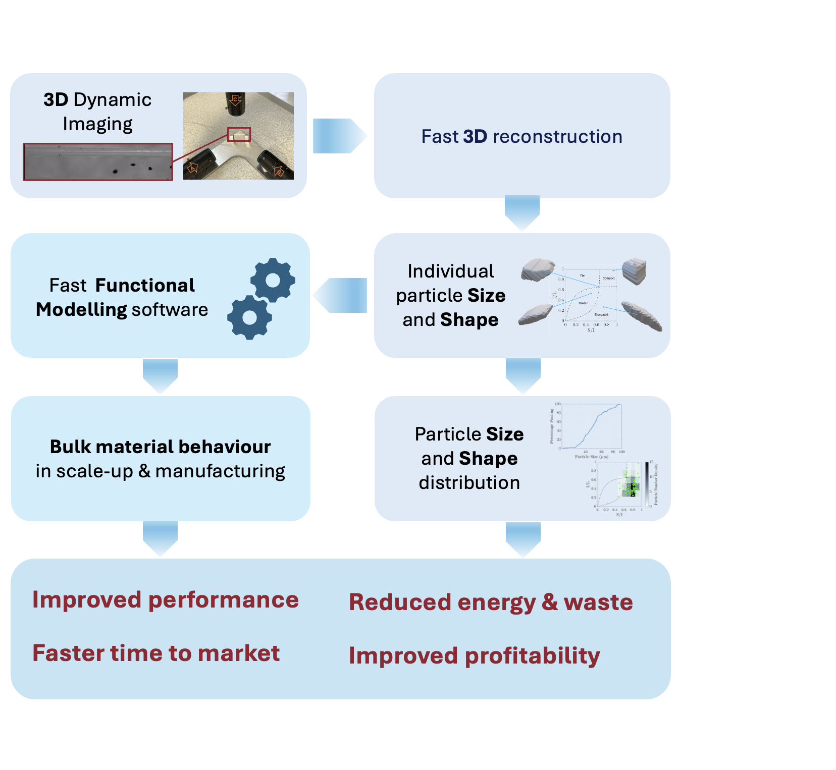 Utilising a unique combination of dynamic 3D imaging and fast functional modelling, the Ocular platform delivers a unique understanding of particle shape and size and its impact on performance and functional properties such as flowability and packing density.
